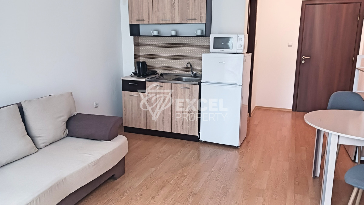 Предлагаме за продажба едностаен имот-студио, с обща площ от 32 кв.м., чиста площ на имота-26.90м2 на втори етаж / от 4-ри етажа/ във ваканционен жилищен комплекс Съни Дей 6. Имотът е в добро състояние, разполага с един климатик, разтегателен диван за двама, кухненски бокс, оборудван с хладилник, кухненски шкафове, котлон, кана и микровълнова. Има баня с тоалетна, бойлер, душ и мивка. Няма тераса, но жилището е светло и уютно, с гледка към басейна на сградата, зелените площи, удобно за ползване през летния период или за отдаване под наем.