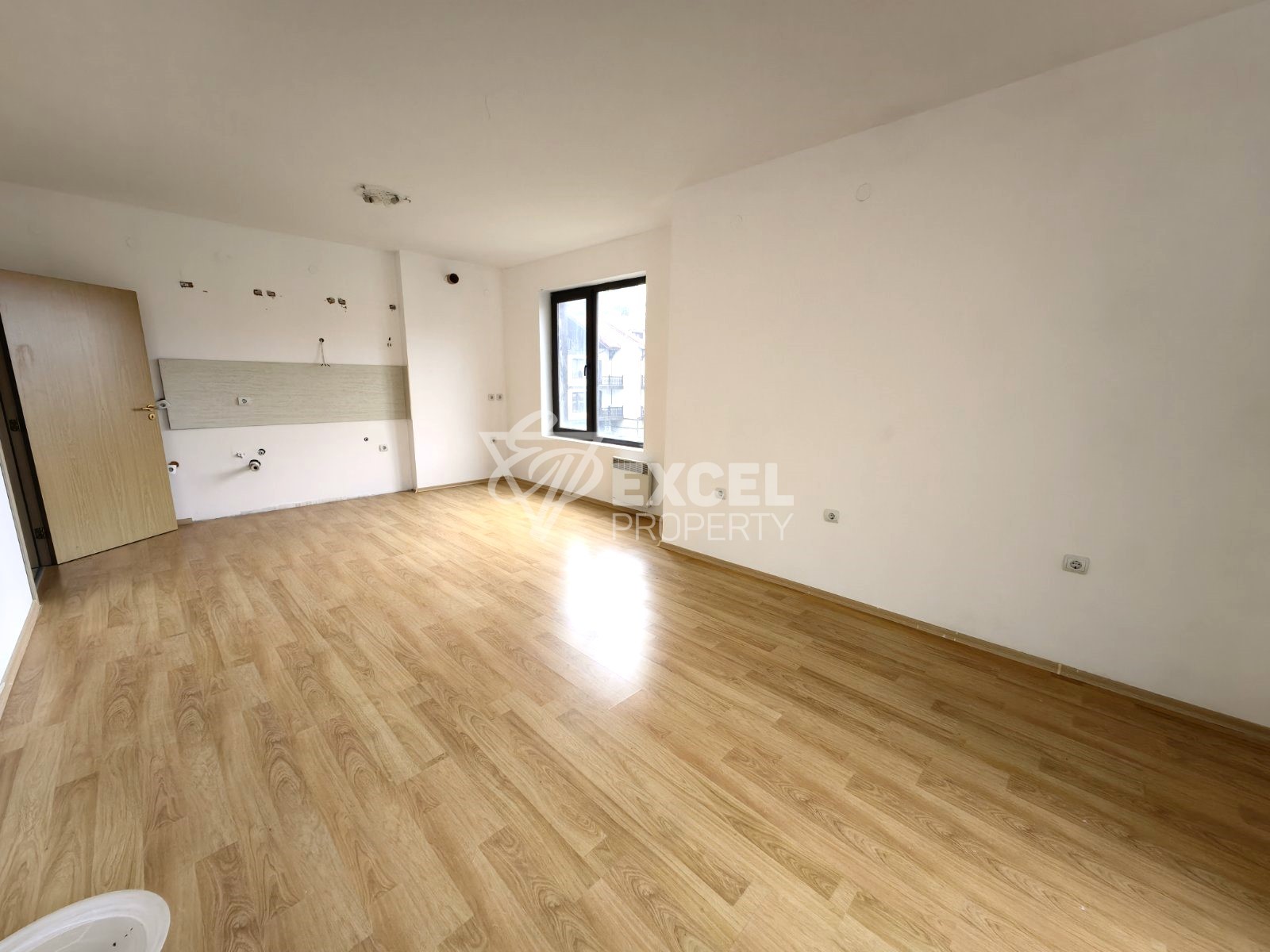 Имотът се намира на трети етаж и разполага с голямо входно антре, слънчева дневна с предвидени изходи и връзки за кухня , самостоятелна спалня с малък балкон, баня с тоалетна и вана , просторна южна тераса с панорама Пирин.