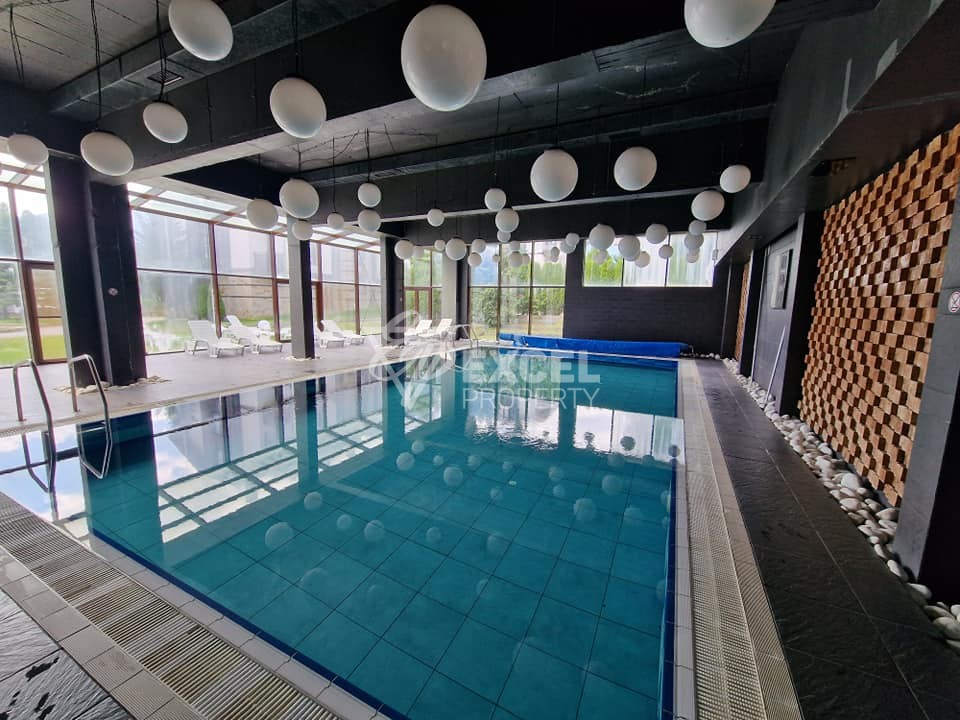 Комплексът предлага услуги като: басейн с минерална вода, зона за релакс със сауна, парна баня и солна сауна, ресторант, лоби бар с камина, конферентна зала, безплатен и охраняем паркинг, неограничен Wi-Fi, детска площадка на открито, билярд, тенис на маса, включени в таксата поддръжка от 10€ на кв.м. годишно
