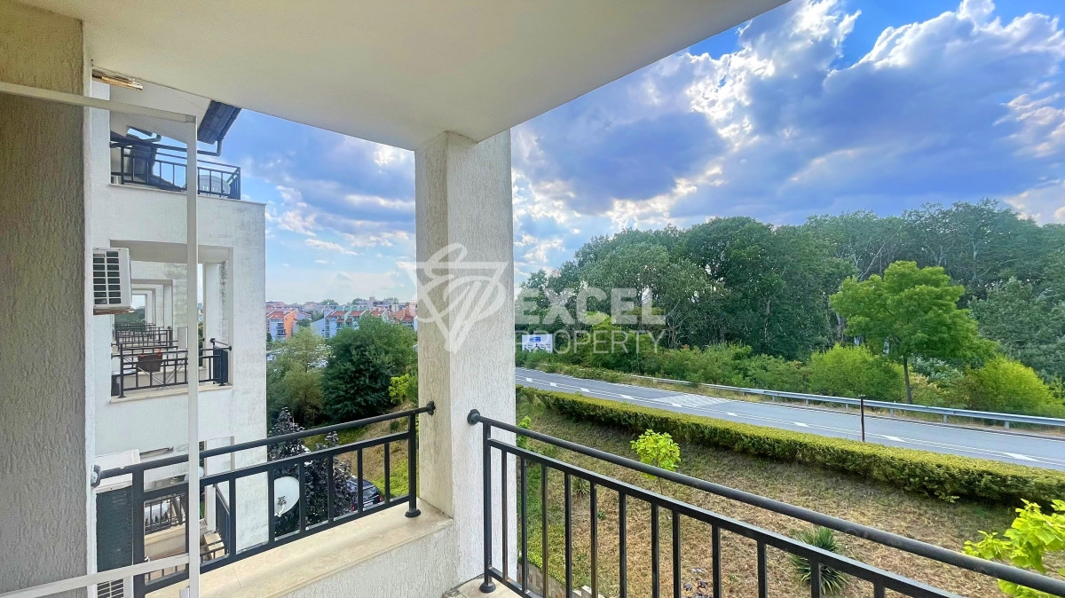Ексел Пропърти предлага за продажба двустаен апартамент в комплекс Съни Бийч Хилс. Имота е светил и слънчев, намира се на четвъртия етаж и има обща площ от 63 кв.м. Предлага се за продажба напълно обзаведен и разполага с всекидневна с кухненски бокс, спалня, баня и балкон. Кухнята е снабдена с котлони, хладилник и пералня. Всекидневната е обзаведена с разтегателен диван, маса за хранене с четири стола и ТВ сет. В спалнята ще намерите двойно легло с нощни шкафчета, гардероб и тоалетка. Банята е с душ кабина, на разположение е един климатик. Терасата е с добър размер, има достъп от двете стаи и западно изложение. Имота предоставя отлична възможност за отдаване под наем. Ползван е малко, намира се в отлично състояние и е готов да посрещне новите си собственици.