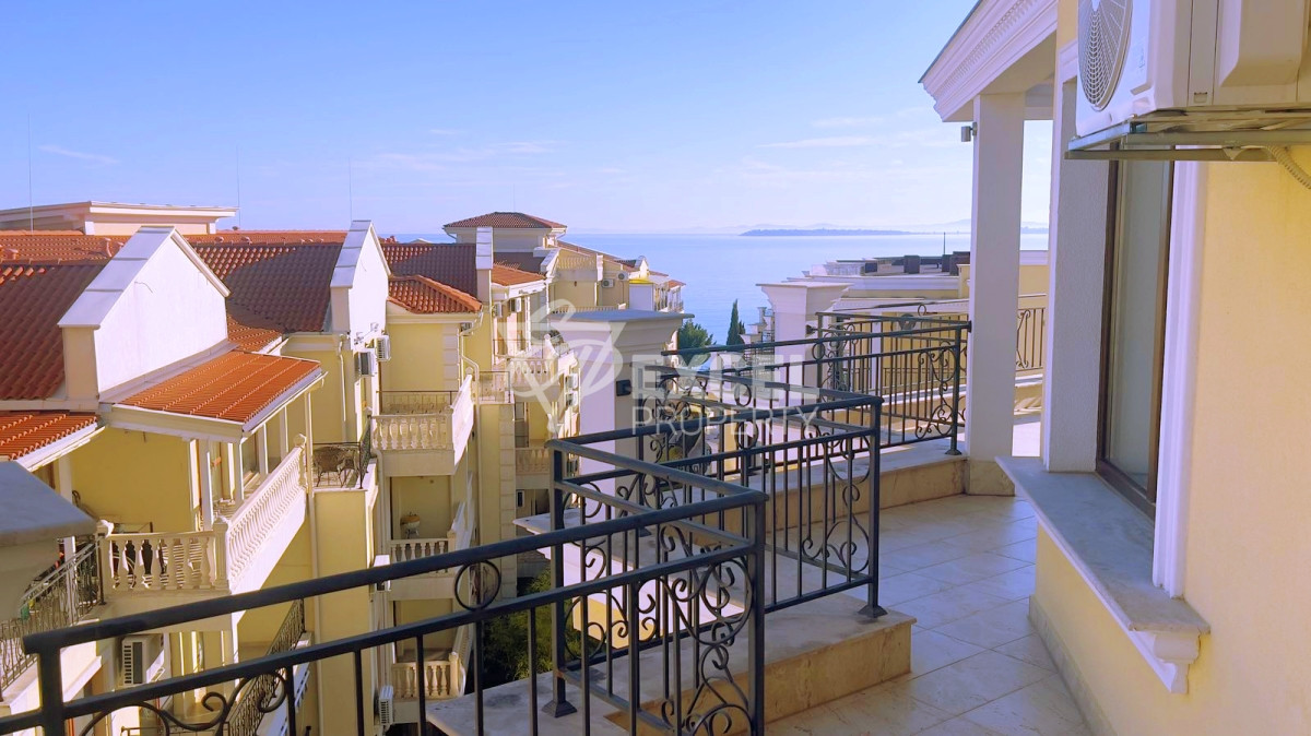Ексел Пропърти предлага за продажба двустаен апартамент на метри от морето в Свети Влас. Имота е светъл и слънчев, намира се на последния пети етаж и е с обща площ от 57 кв.м. Предлага се без мебели и се състои се от малковходно антре, всекидневна с изходи за кухненски бокс, спалня, баня и балкон. Терасата е с добър размер и има гледка към планината и морето. Изложението е изток, имотът предлага отлична възможност за отдаване под наем. Комплексът е с АКТ 16, разполага с три басейна, директен достъп до плажа, таксата поддръжка е 10 Евро/м2.