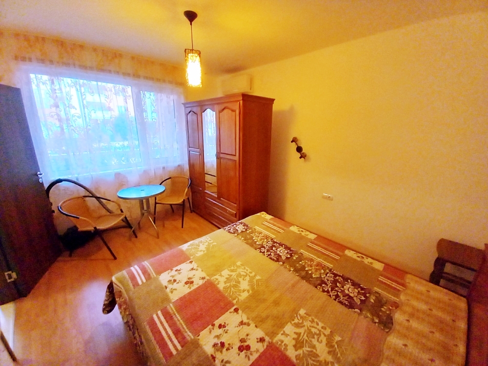 Имотът се състои от входно антре, дневна с обзаведен кухненски бокс и зона за хранене, една спалня, баня с тоалетна и балкон. Терасата е достъпна от страна на всекидневната, тя предлага гледка към басейна и зелените площи на комплекса. Апартаментът е оборудван с всичко необходимо, подходящ за целогодишно живеене или лятна почивка, или отдаване под наем. Има два климатика, пералня - в банята, разтегателен диван в хола, оборудвана кухня за пълноценен престой. Имотът е светъл и просторен, може да бъде закупен с цел последващо отдаване под наем. Комплекс Сий Даймънд (Sea Diamond) е разположен в западната част на курортния град Слънчев бряг, на тиха и спокойна улица. Инфраструктурата на района е добре организирана, с необходимите комуникации. Наблизо има супермаркет, магазини, ресторанти, кафенета, медицински център, аптека, летни атракции, автобусни спирки. Популярният плаж Какао бийч, е само на 5 мин пеша. Комплексът има АКТ 16