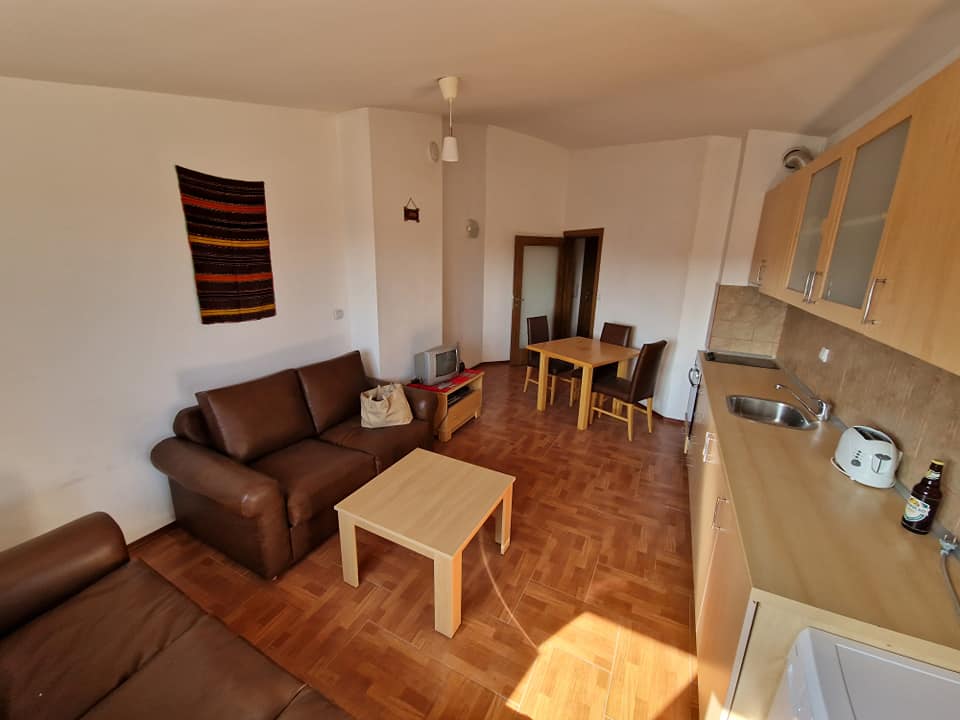 Апартаментът се състои от хол с кухня, две спални, антре, баня с тоалетна и голям балкон с гледка към околните комплекси и част от Рила планина. Помещенията са завършени със стени – латекс, подове – ламинат и теракот и ПВЦ дограма. Имотът се предлага за продажба обзаведен. Банята е оборудвана с душ-кабина, умивалник, тоалетна, огледало и бойлер. Може да се отоплява чрез камина, чрез електрически конвектори или климатик. Имотът се продава заедно с мазе с площ от 2,32 кв.м.