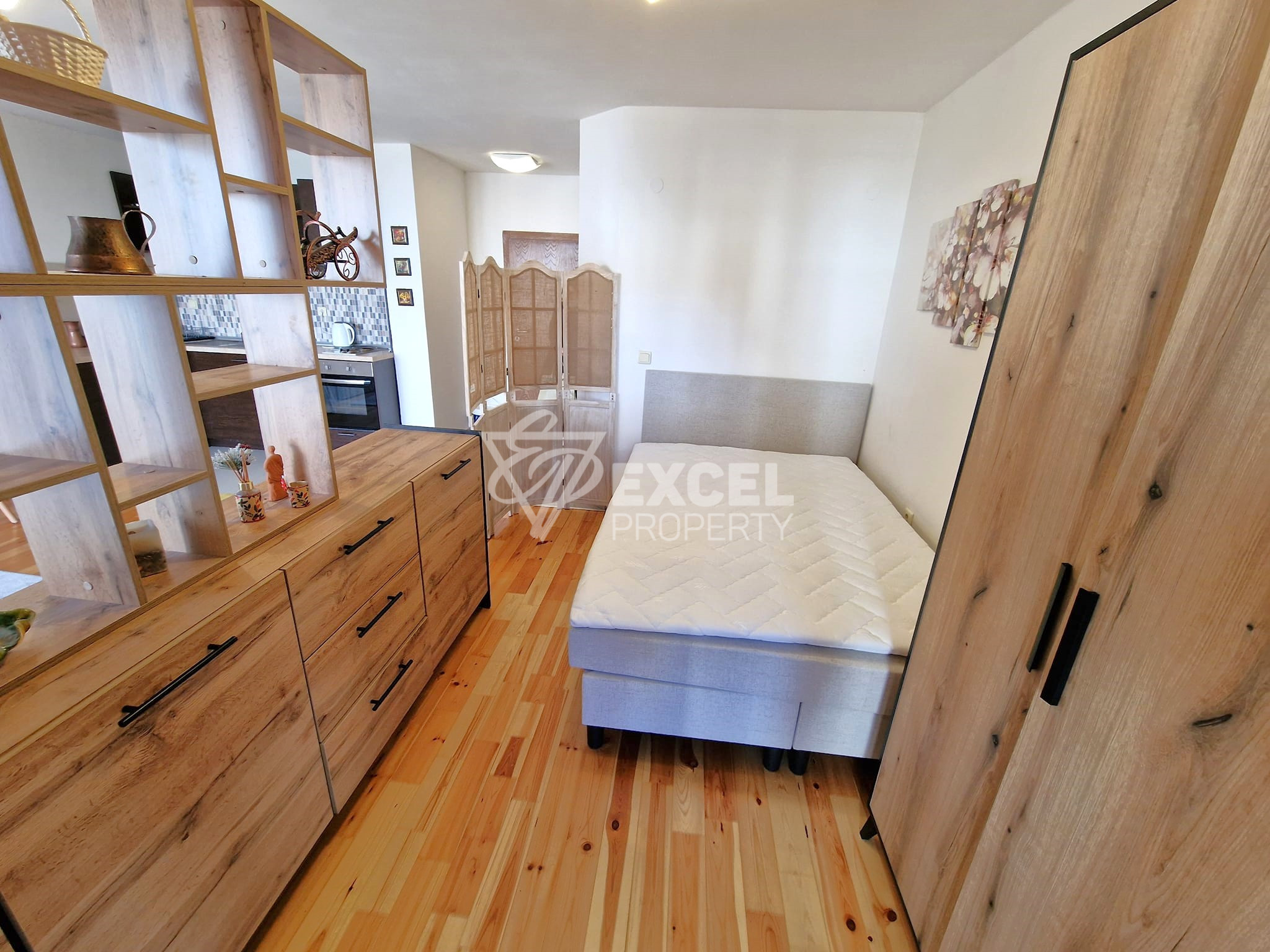 Предлагаме за продажба в Банско: просторно обзаведено студио с придаден елегантен акцент, съответстващ на особеностите на жилището. Апартаментът се състой от входно антре, напълно оборудвана баня и тоалетна, кухненски кът, отделена от дневната спалната зона с преградна стена и тераса с източно изложение. Покритията са матови, а не лъскави, така че подчертават естествената елегантност и мистерия в малките елементи на апартамента. Цветовото оформление и преградната стена по поръчка със сигурност ще очароват бъдещия собственик.