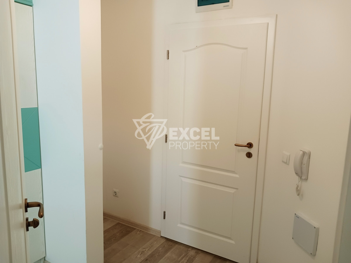 Студиото се намира на партерния етаж и се състои от: коридор, всекидневна със спалня, масичка с 2 стола, гардероб, хладилник, телевизор, напълно оборудвана баня и самостоятелен двор. Студиото е с жилищна площ -24.29 м2, общи части- 4.77 м2, обща площ 29.06 м2 и самостоятелен двор с площ 8.97 м2- във вид на много удобна тераса. Има и един климатик. Идеално предложение за покупка с цел инестиция.