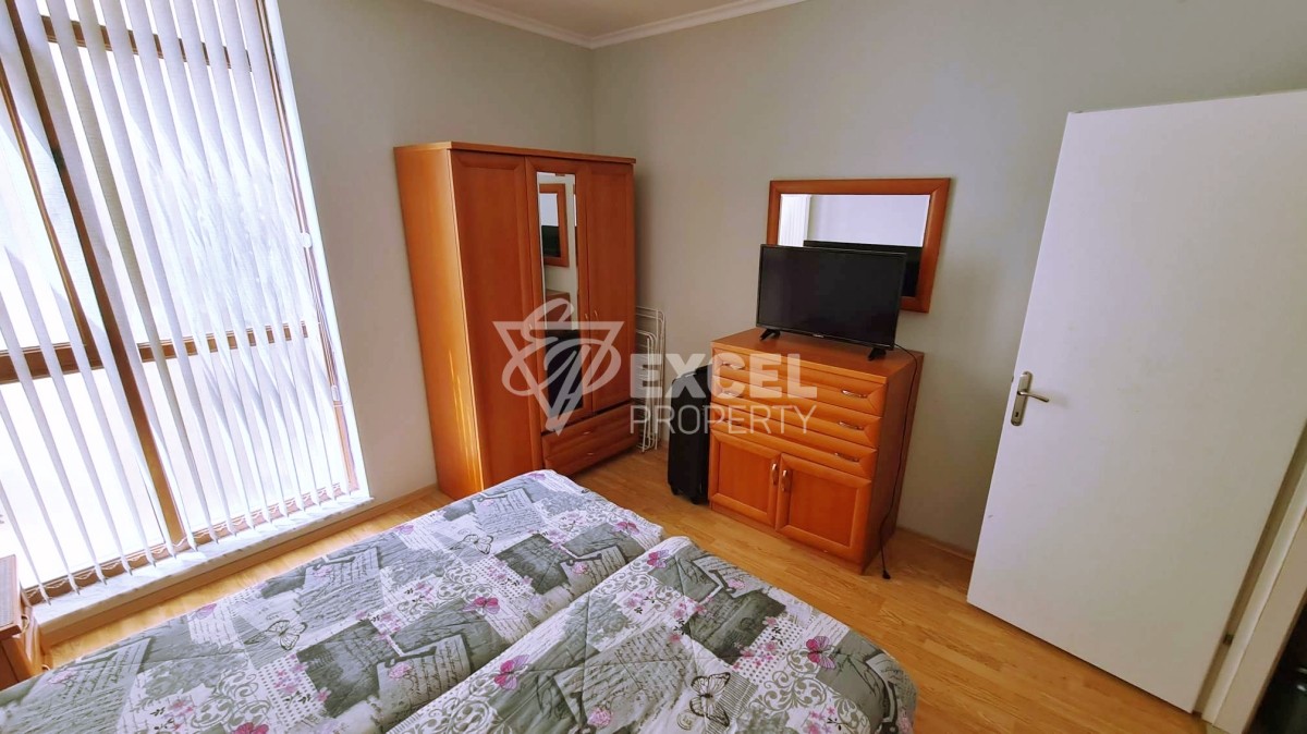 Ексел Пропърти предлага за продажба тристаен апартамент в района на Какао Биич в Слънчев Бряг. Имота се намира на третия етаж, има жилищна площ от 76 кв.м. плюс допълнителни 6 кв.м. мазе. Продава се напълно обзаведено и разполага с входно антре, всекидневна с кухненски бокс, две спални, баня с вана и балкон. Във всекидневната ще намерите разтегателен диван, Маса за хранене с четири стола, масичка за кафе и ТВ шкаф с телевизор. Кухнята е снабдена с котлони, аспиратор, микровълнова и хладилник. Двете спални са оборудвани идентично с двойни легла с нощни шкафчета, гардероб, тоалетка и скрин. Банята е напълно оборудвана, на разположение са три климатика. Терасата е с много добър размер има източно изложение и прекрасна гледка към басейна. Имота е в отлично състояние и е готов да посрещне новите си собственици. А също така предоставя отлична възможност за отдаване под наем.