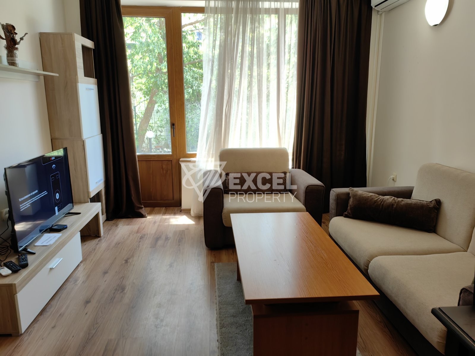 Апартаментът се намира на партерен етаж, с южно изложение и обща квадратура 59кв.м. Отоплява се с климатик. Имотът разполага с бърз интернет и кабелна телевизия.