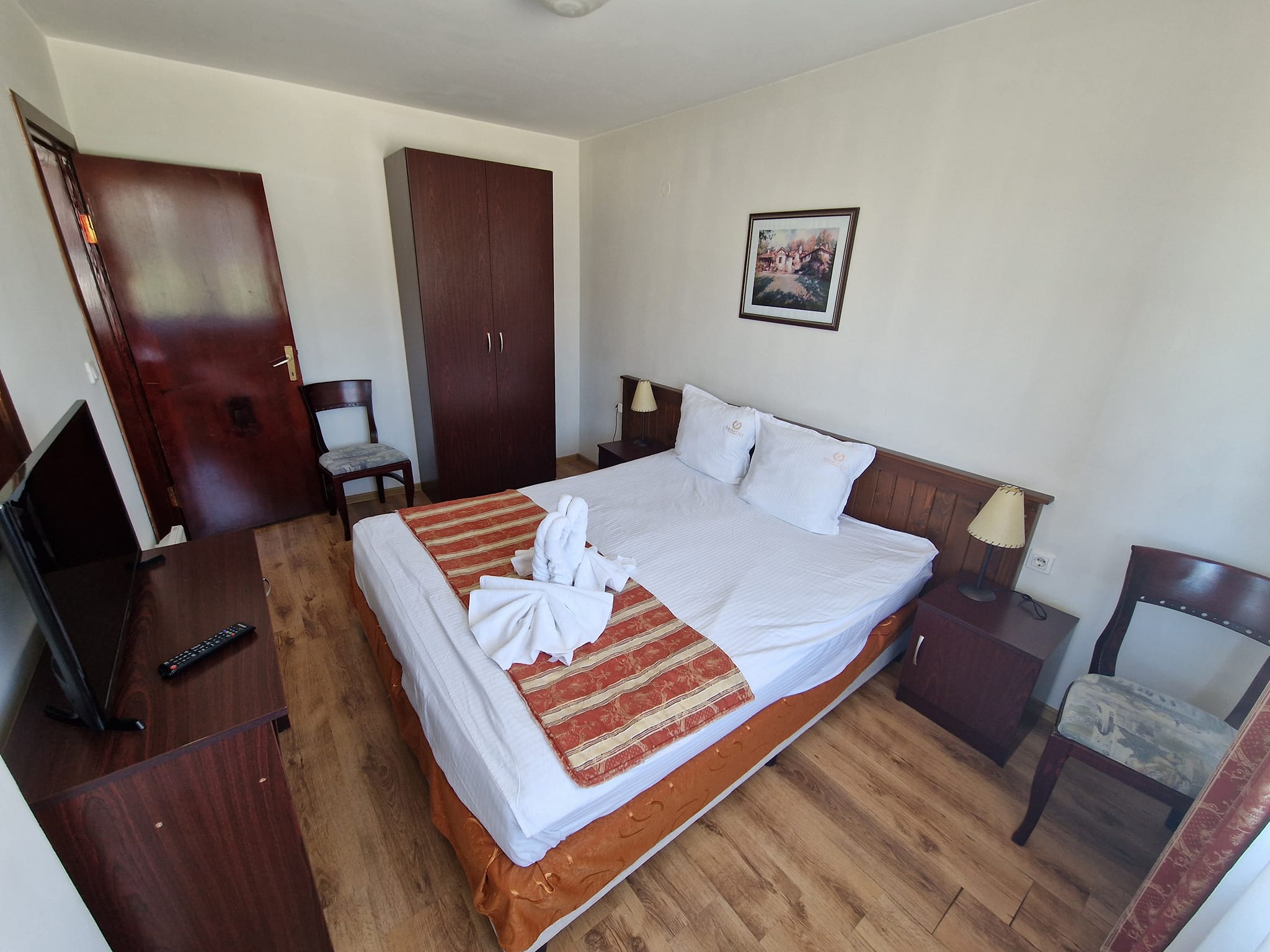 Предлагаме за продажба югозападен двустаен апартамент намиращ се на втори етаж в апарт хотел Elegant LUX. Апартаментът е с обща площ от 58,78 кв.м., за настаняване на 4 човека и се състои от просторна дневна с кухня и трапезария, една спалня, просторна баня с душ кабина и тераса с гледка към Пирин планина.