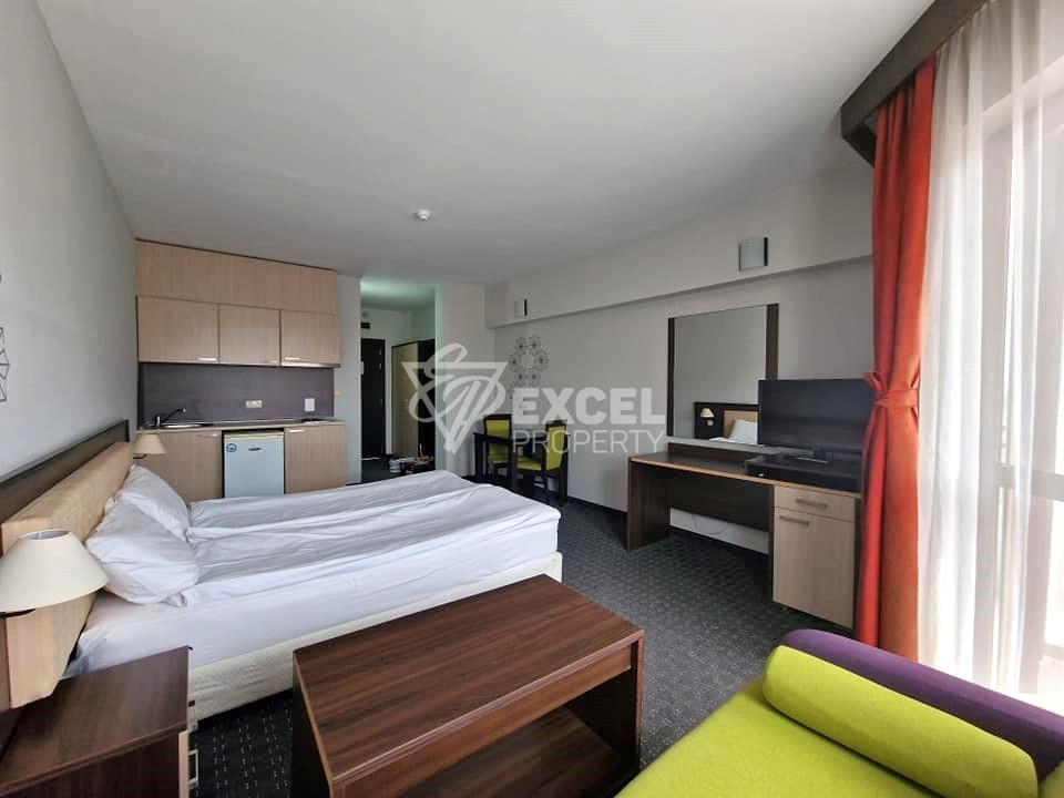 Ексел Пропърти представя на вашето внимание обзаведен, уютен апартамент (студио) за продажба в Банско. Имотът се намира на трети етаж в Апартхотел Гинес, само на 200 метра от начална станция на ски лифта, непосредствено до хотел Belvedere!