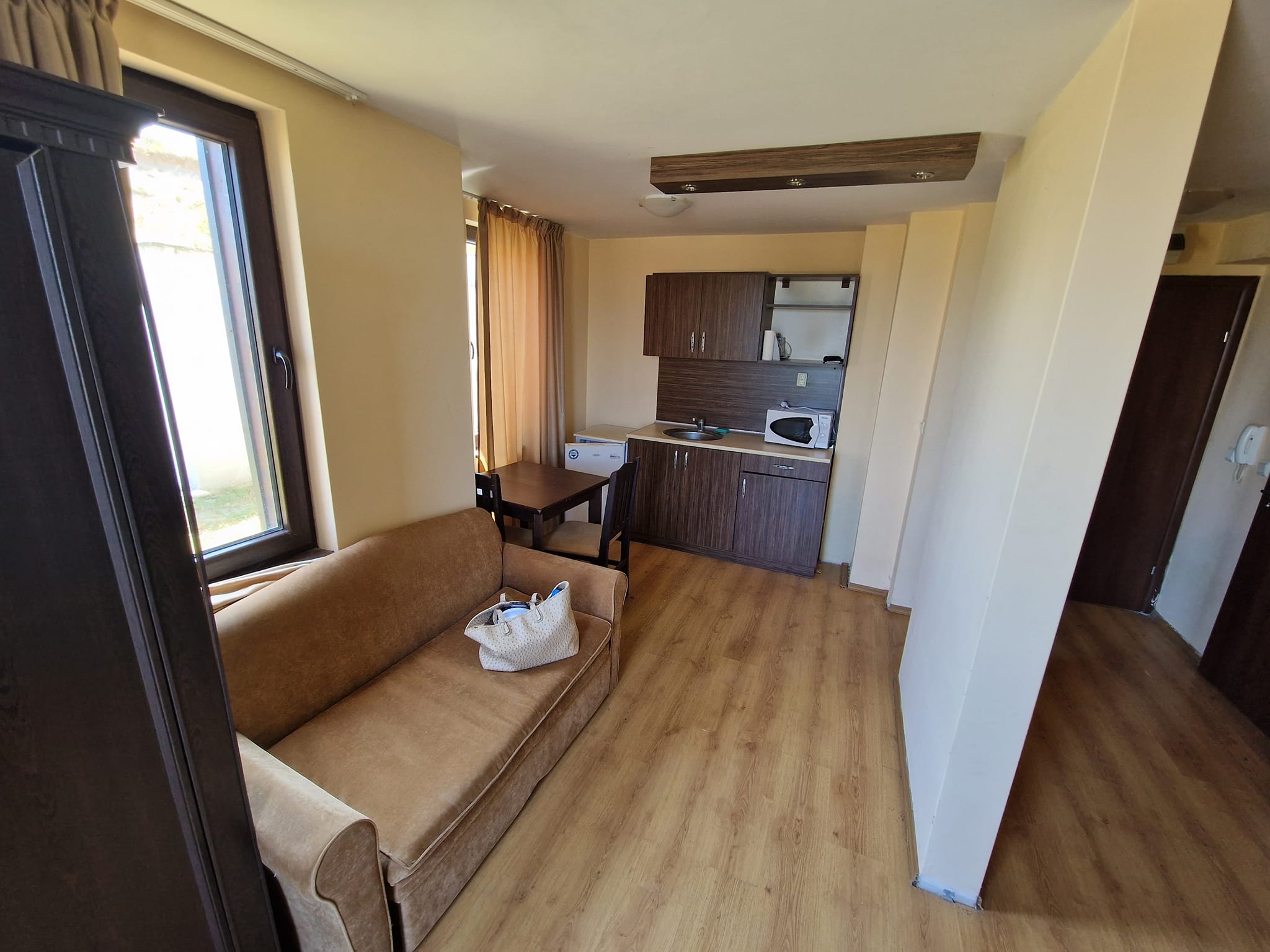 Представяме на вашето внимание обзаведено студио със собствен вход за продажба в комплекс Роял Парк. Комплексът има такса за поддръжка от 12 евро на кв.м., предлага – рецепция, лоби бар, ресторант, фоайе, релакс зона, закрит басейн, сауна, парна баня, фитнес, масаж, ски гардероб, микробус по разписание до първа станция на кабинковия лифт, денонощна охрана и видео наблюдение.