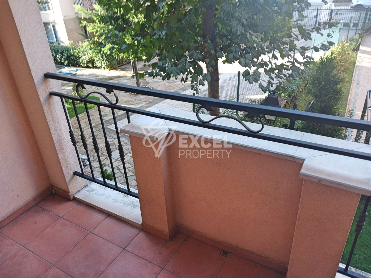 Апартаментът е с обща площ от 32кв.м. намира се на 2-ри етаж, в сградата има работещ асансьор и се състои от входно антре, стая с кухненски бокс, баня с тоалетна и тераса с хубава гледка към зелените площи на сградата.
