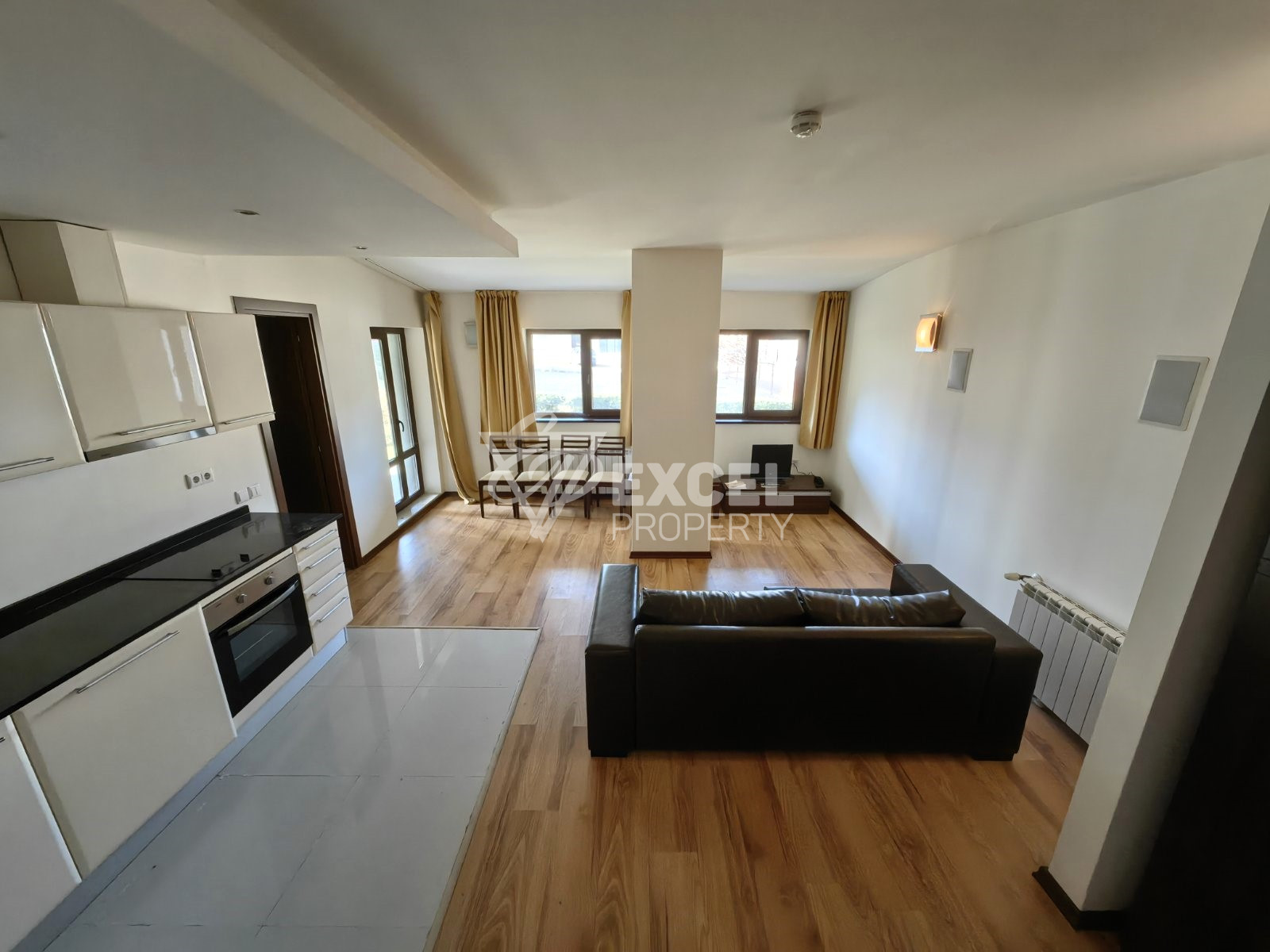 Ексел Пропърти представя на вниманието Ви светъл и просторен мезонет с площ от 81 кв.м , разположен на партерно ниво в 4-звезден целогодишен комплекс.