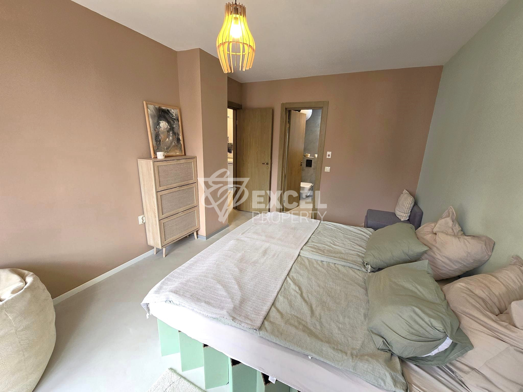 Ексел Пропърти има удоволствието да Ви предложи за продажба стилно обзаведен двустаен апартамент с камина и панорамна планинска гледка. Имотът е с ниска такса поддръжка (6 евро на кв.м.)! Отделни партиди за ток и вода!