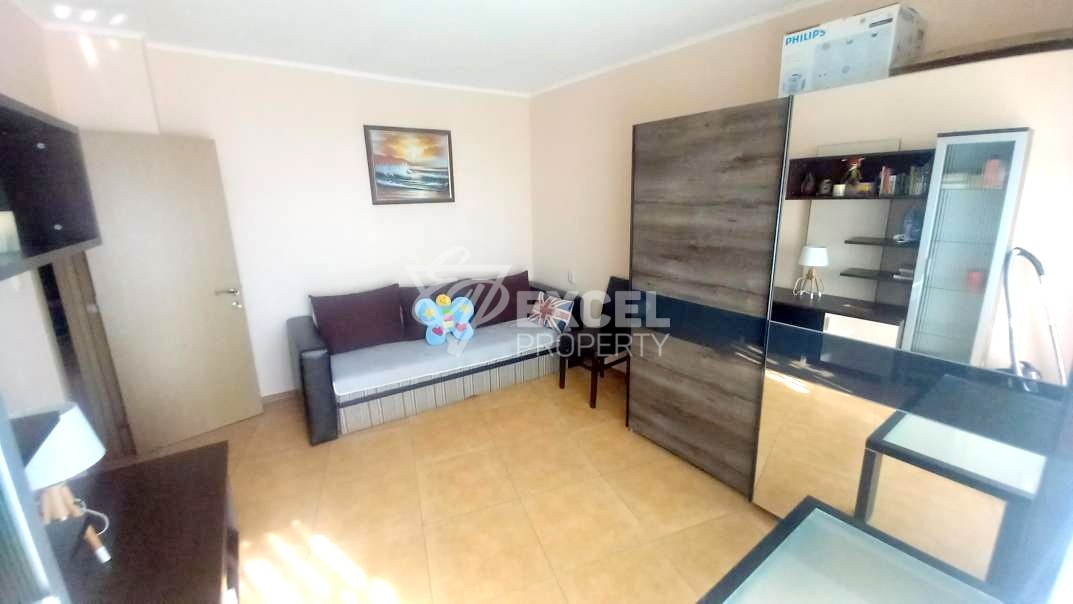 Има две спални и две тераси. Единият балкон е достъпен от страната на хола и предлага гледка към басейна и двора на сградата, а другият балкон е достъпен от двете стаи / 2-те спални/. Имотът е в отлично състояние и е готов да посрещне новите си собственици!