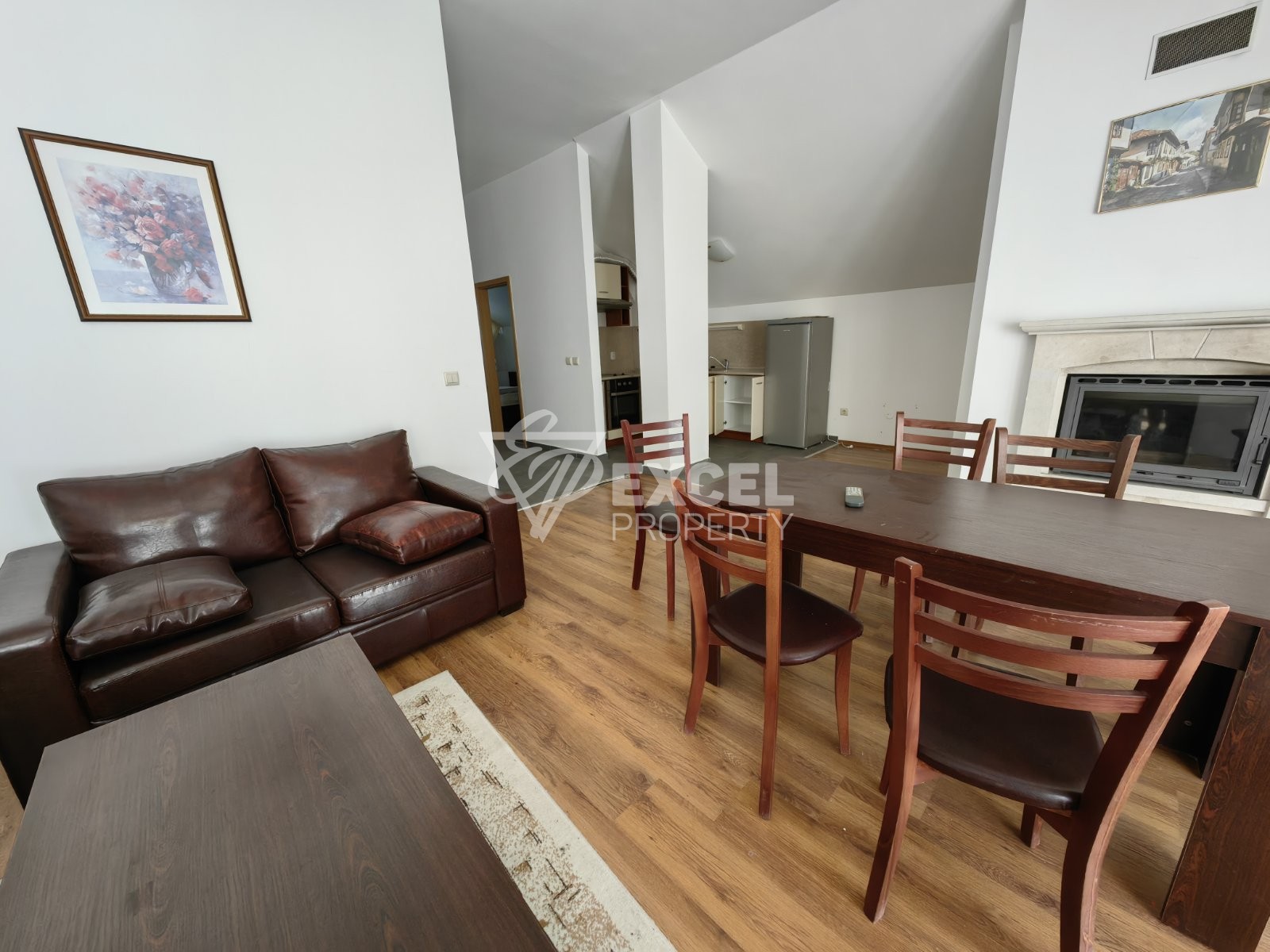Жилището е разположено на четвътри етаж и е разпределено: входно антре, просторна дневна с камина, кухненска зона и кът за отдих, две спални, две бан и с тоалетна и душ, голяма югоизточна тераса с прекрасен изглед към планината и голф игрището.